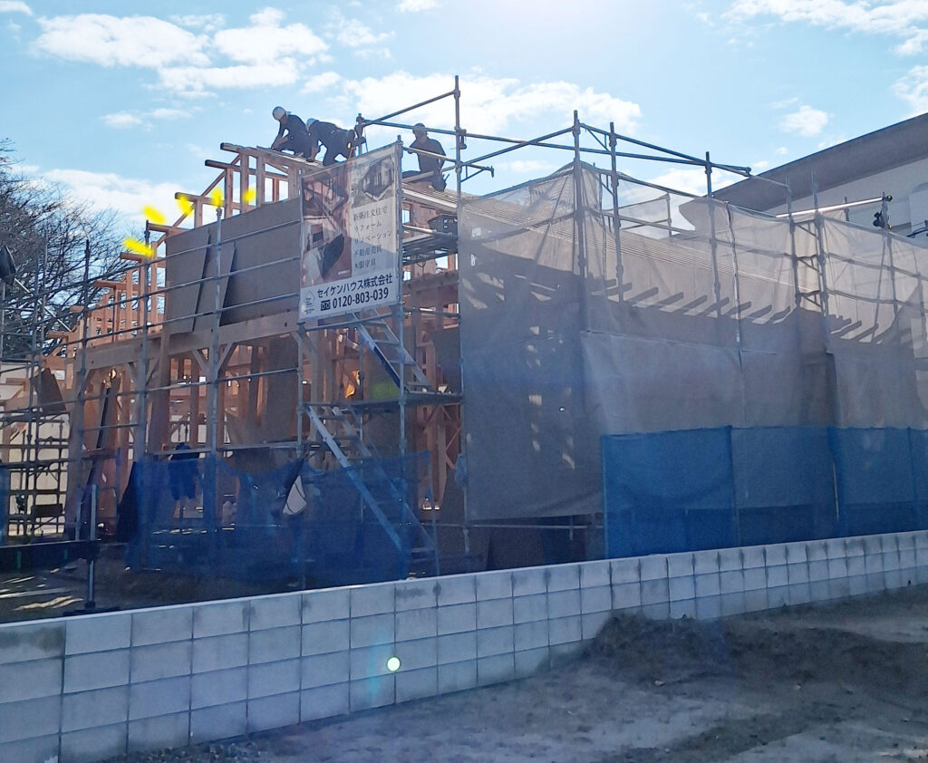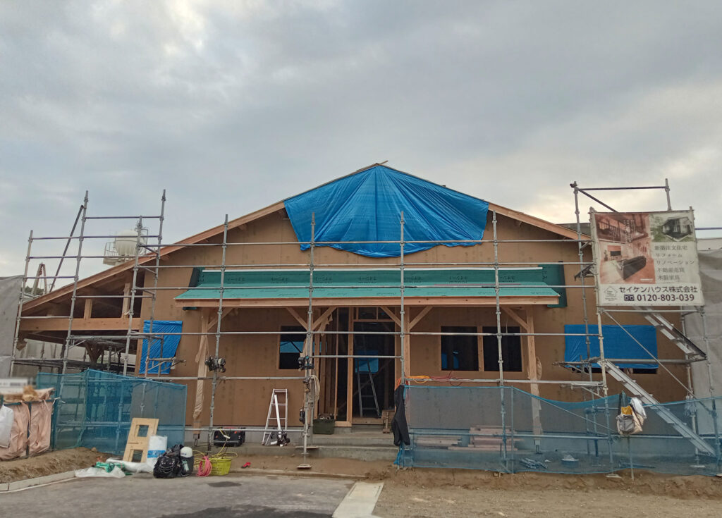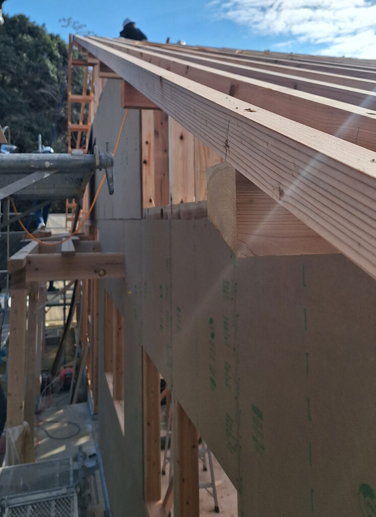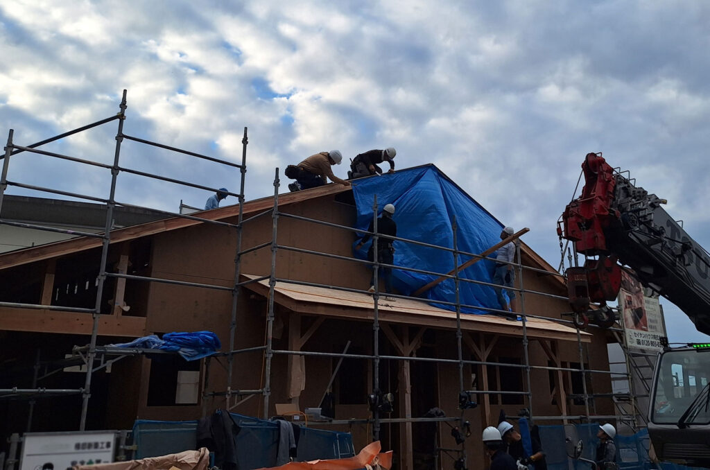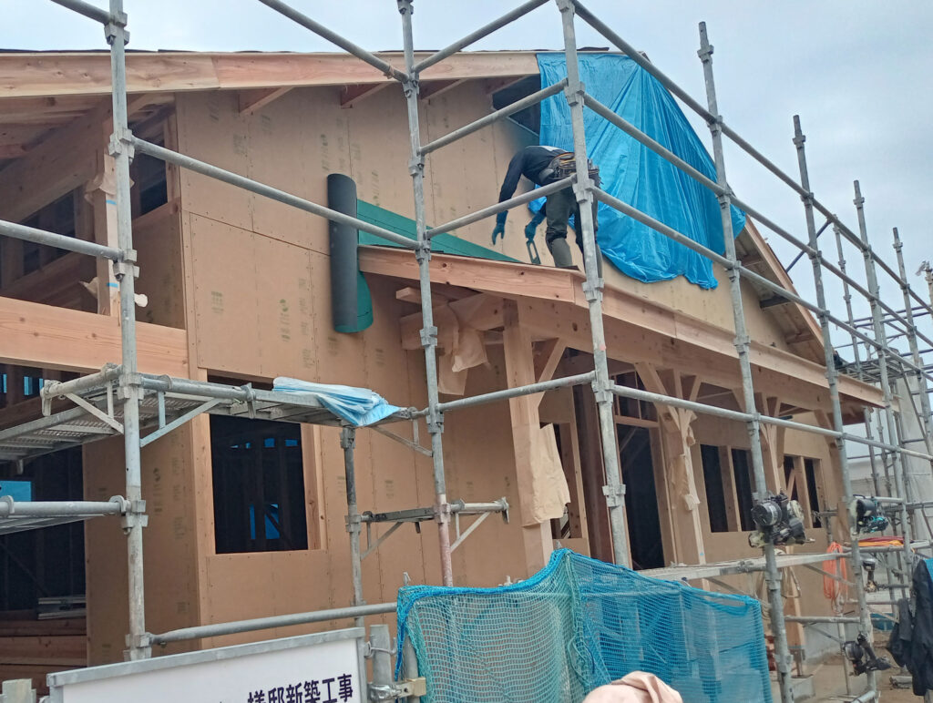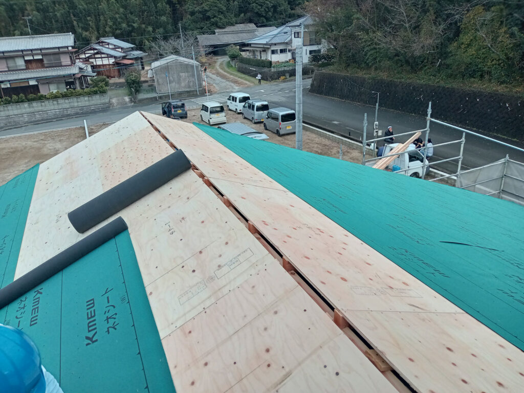 そして、面材を貼る作業と同時に、屋根の下地工事も進んでいます!