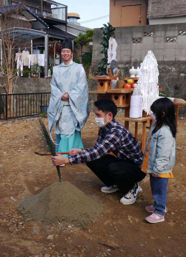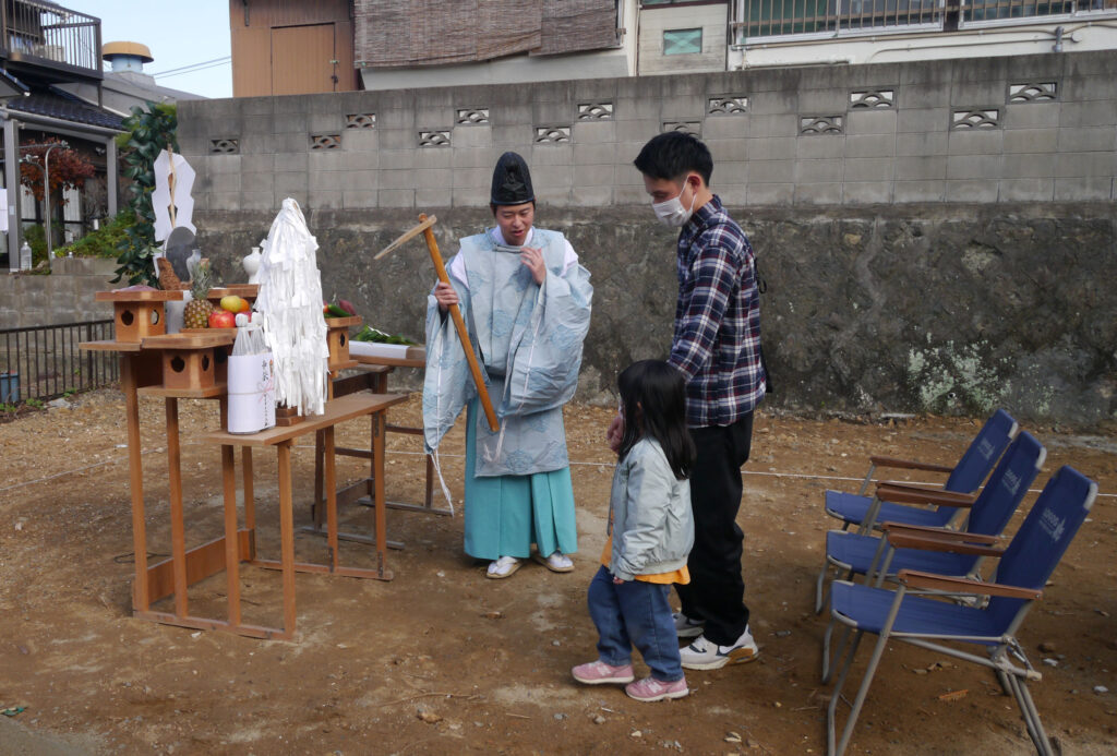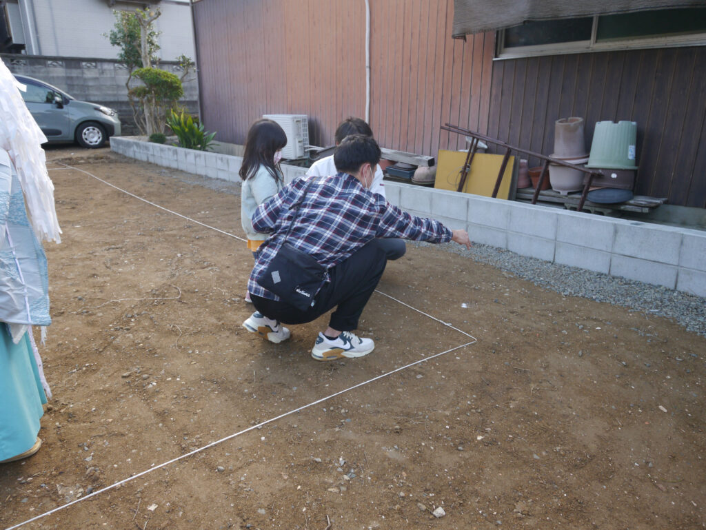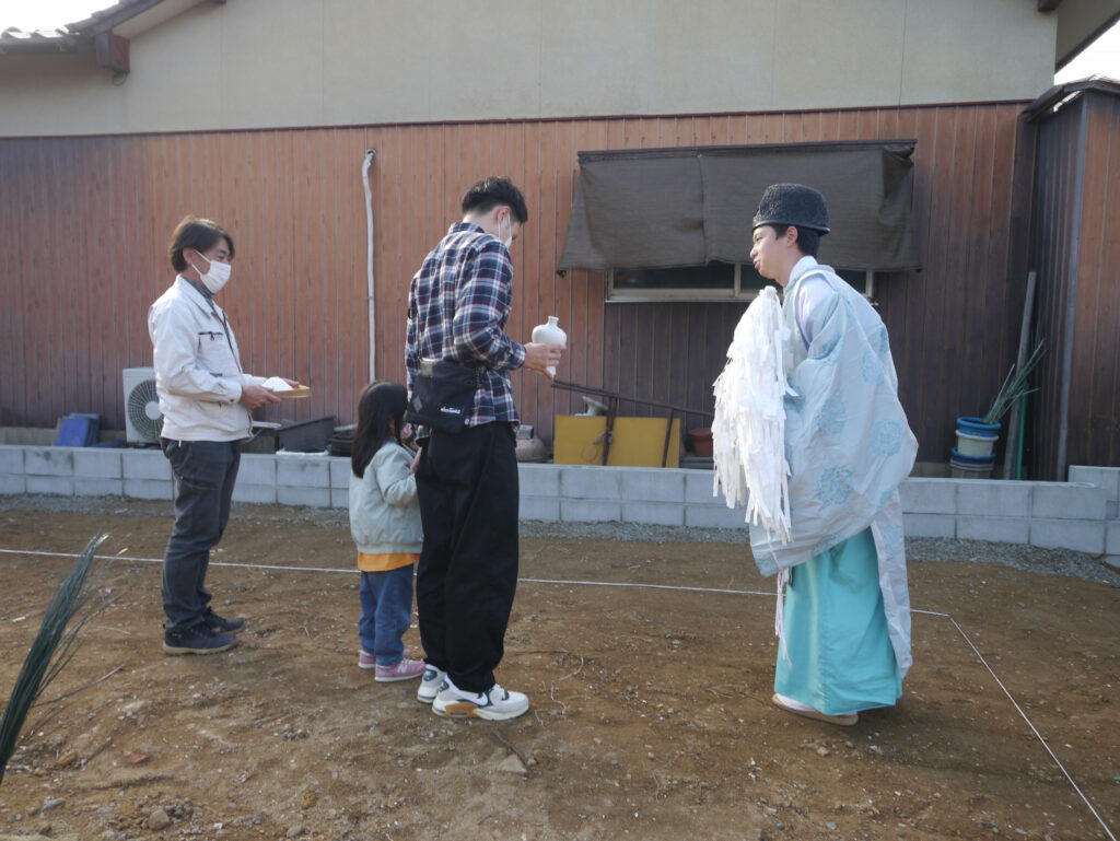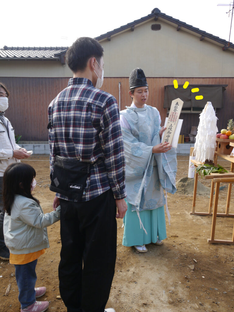 地鎮祭の中には、施主様に行っていただく動作もありますが、その都度その場で教えていただけるので安心して式に臨めますね(#^^#)