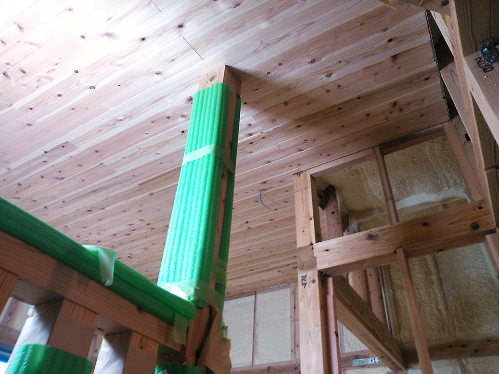 木工事♪~志免町 A様邸~ 志免町3号地 A様邸の幸せづくり状況です~♪ 天井板張りが完了しました! 木の温もりが感じられる仕上がりになりそうですね! 次も造作工事です~♪ タグ: 天井板張り / 新築一戸建て / 木工事 / 福岡注文住宅