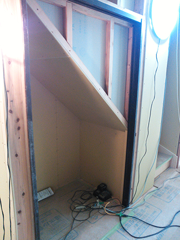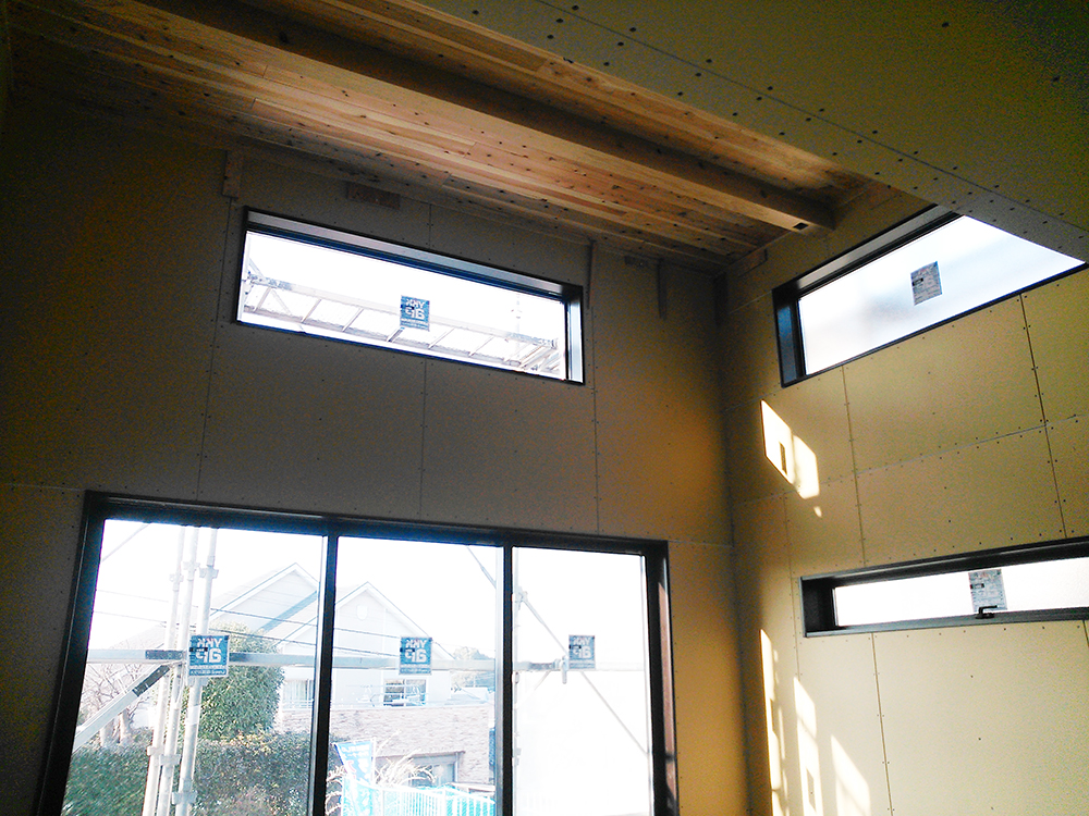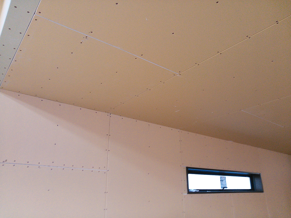 断熱材を吹付け電気配線などを行った後にボードを打ちつける工事を行うといよいよ壁の土台のでき上がりです!