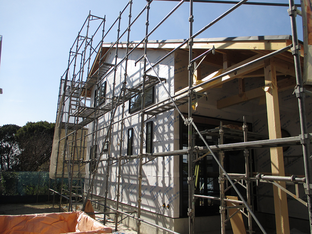 須恵町上須恵 T様邸の幸せづくり状況です~♪ 外壁シート工事が完了しました! 防風・防水透湿シートは壁体内に侵入した湿気を逃し、建物内部に雨水が浸入しないように防止する役割を果たします! 強い家づくりには必...