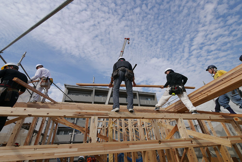 棟上げとは基礎工事が完了し、土台、柱、梁などを施工し、さらに棟木を上げることを言います!