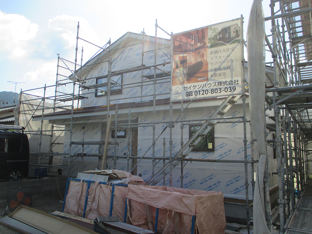 須恵町 Y様邸の幸せづくり状況です~♪ 外壁シート工事が完了しました! 外壁シートは、外壁表面で防ぎきれなかった雨水や内部の結露水、あるいは長年の経年劣化で開いたわずかな隙間から入り込んだ雨水が構造体の内部...