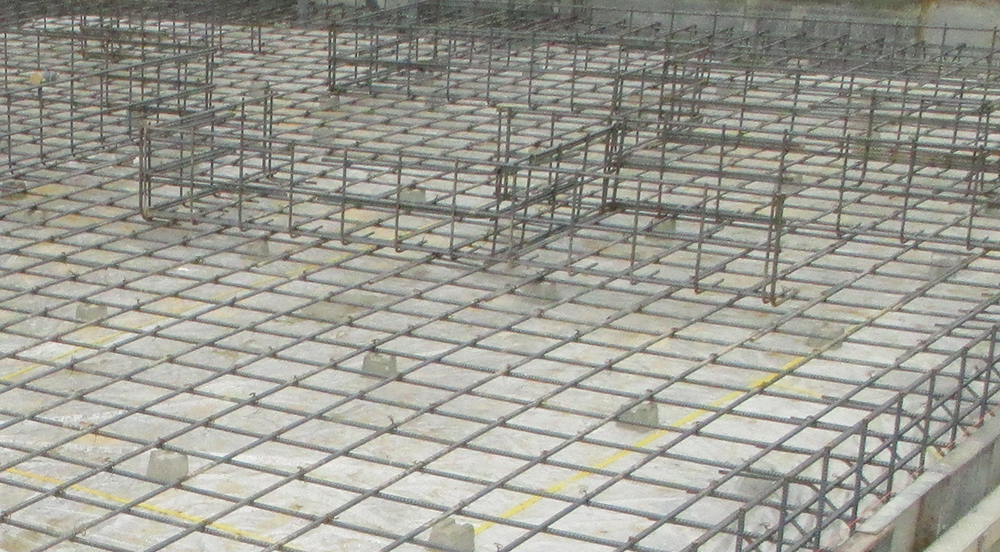 スペーサーブロックを鉄筋の下に敷くことで、鉄筋の下側のコンクリートの厚みを確保し、均一に鉄筋を並べることにより、強度を保ちます!