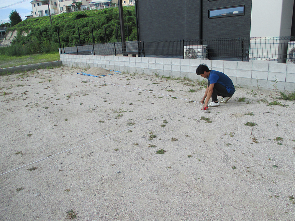 宇美中央 K様邸の幸せづくり状況です♪ 地縄張りを行いました! 地縄張りとは、建物が建つ位置出しをする作業です! 建物のおおよその位置と形を敷地内に示すために張りめぐらすロープを地縄といいます...