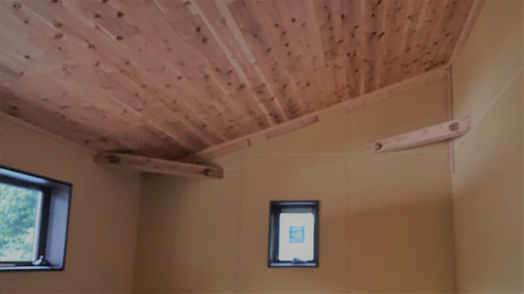 天井の杉板張りも完了してます!