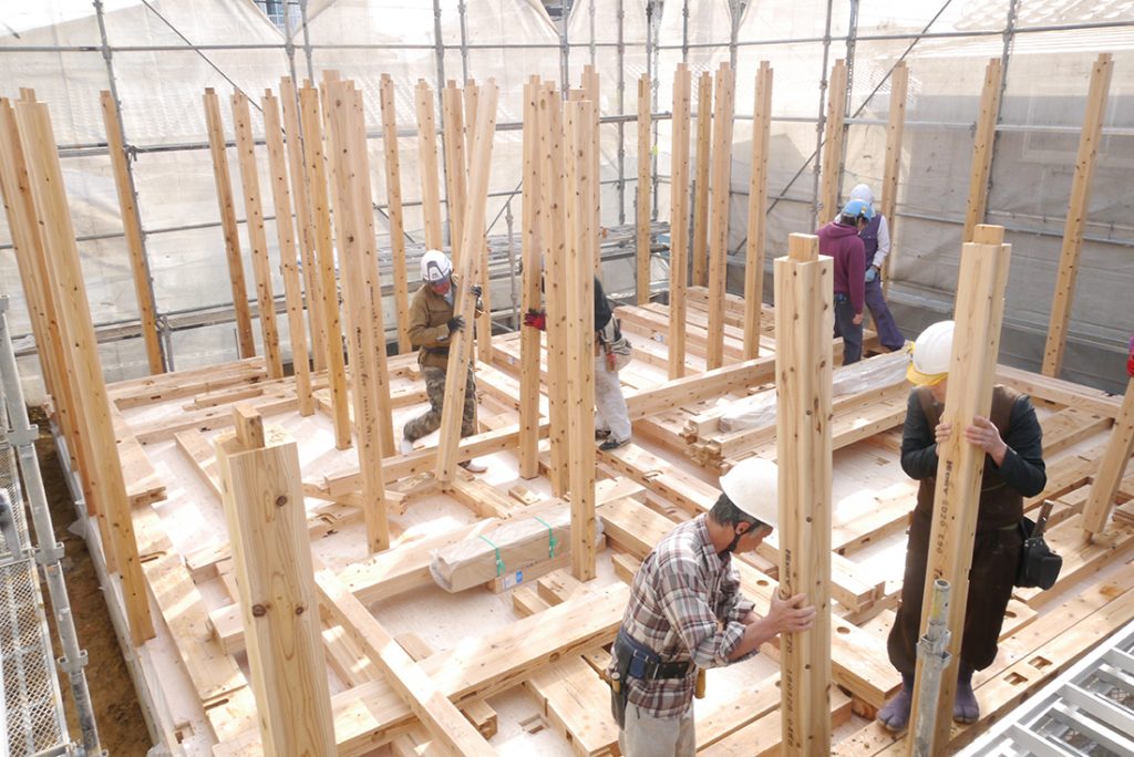 およそ1000本もの木を、1本1本組み立て、1日で一気に組み立てます。