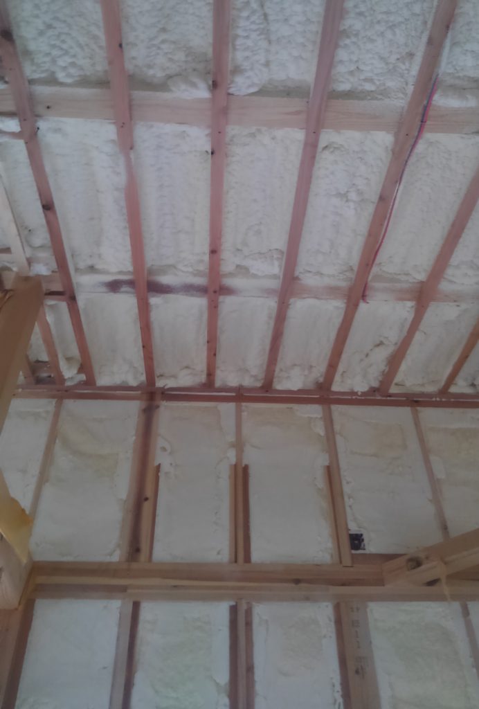 吹付の断熱材は、わずかな隙間にも良くいきわたり、夏は室内に熱が伝わりにくく、冬は熱が逃げにくくなります!