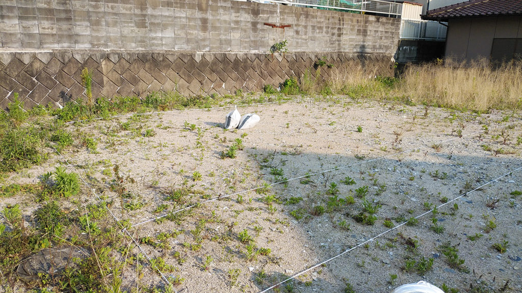 建物のおおよその位置と形を敷地内に示すために張り巡らすロープを地縄といいます!