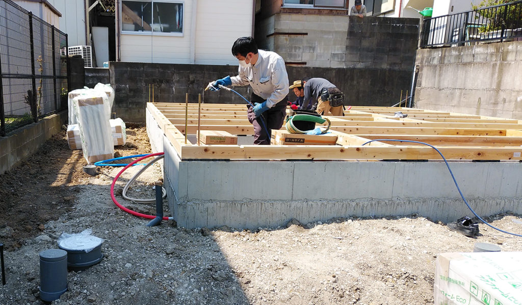 土台敷きは基礎コンクリートの上に土台や基礎パッキンを設置していく作業です!基礎パッキンは、しっかりと換気をとるために置かれます!
