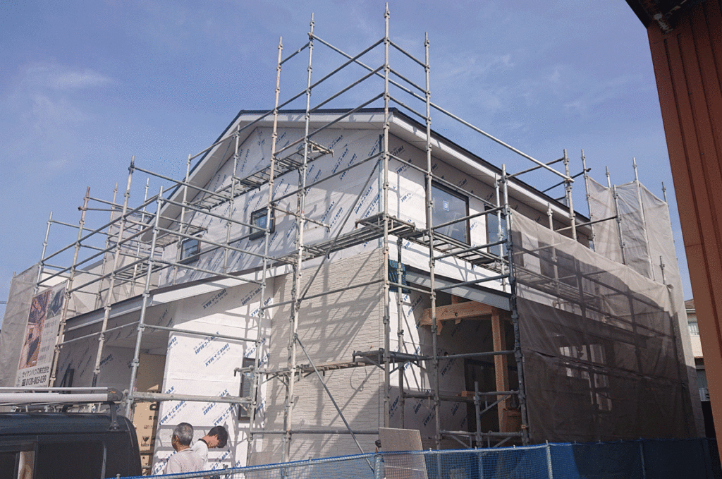サイディング工事中♪~古賀市S様邸~ 古賀市S様邸の幸せづくり状況です! サイディング工事中です♪ 外観の出来上がりが楽しみですね(^^♪ 次の工程に進みます! タグ: サイディング / 古賀市 / 外観 / 施工状況 / 注文住宅 / 福岡