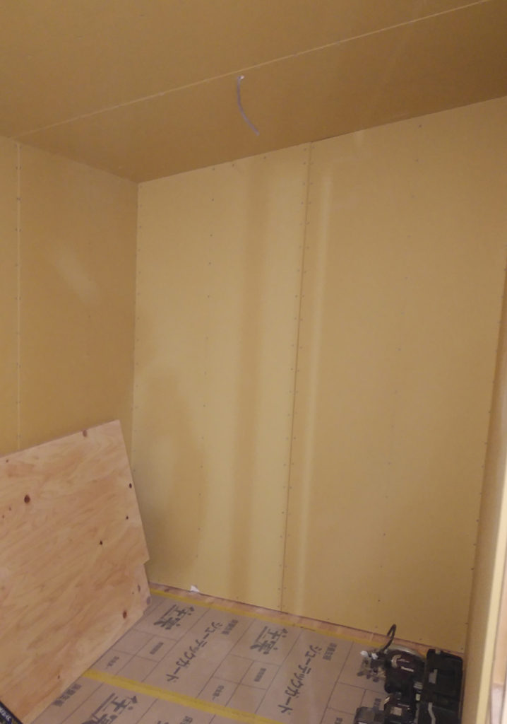 ボードを打ち付ける工事が終わると、壁の土台の出来上がりです!