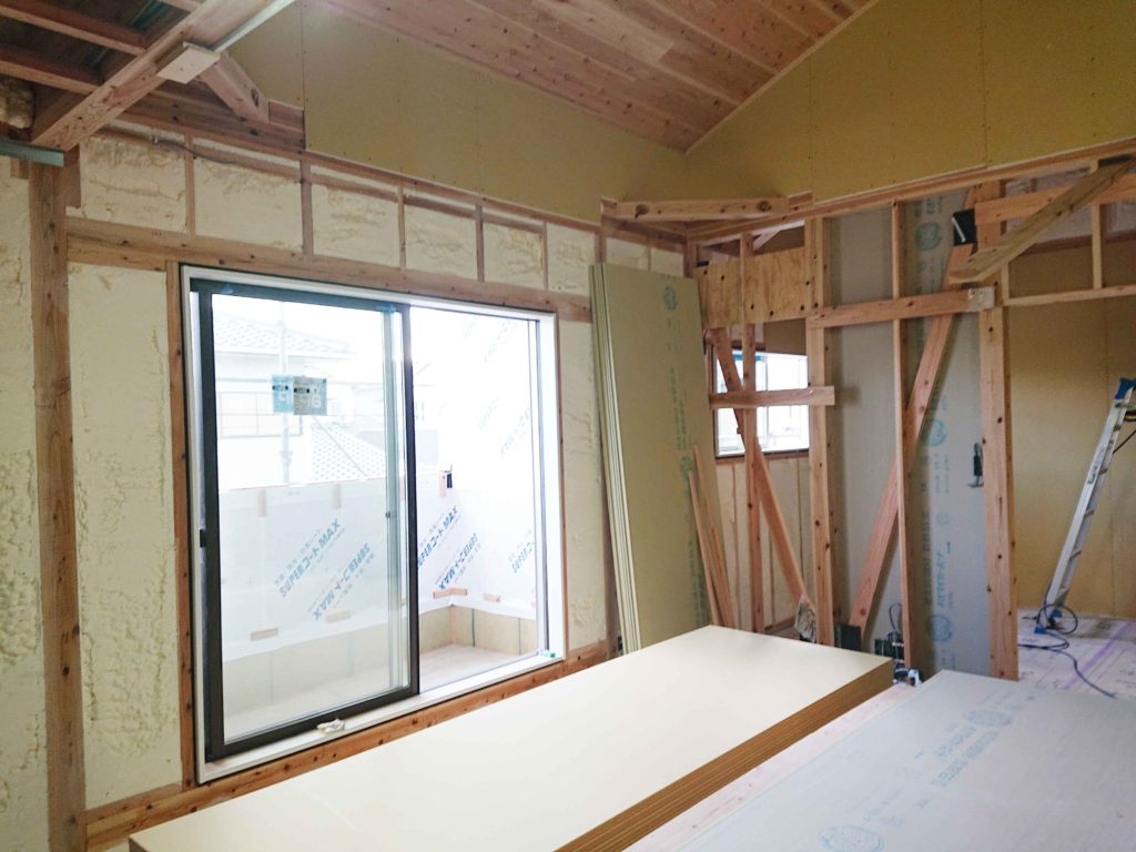 ボードを打ち付ける工事が終わると壁の土台の出来上がりです!