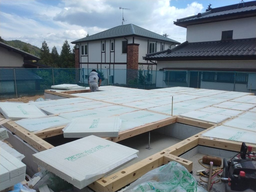 それが終わると、その上に床下の断熱材を設置する工程まで進みます!