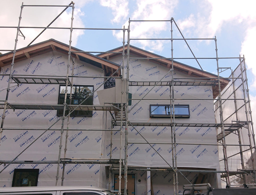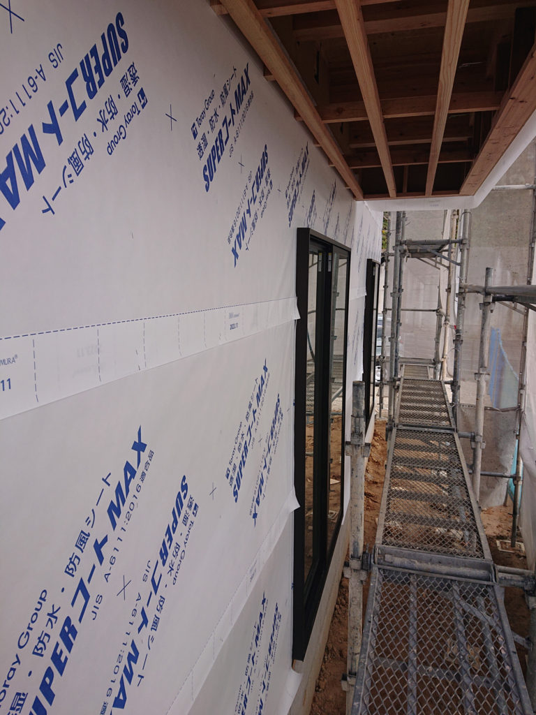 万が一の雨水が、構造体まで達しないように防ぐ役割を外壁シートは果たしています!