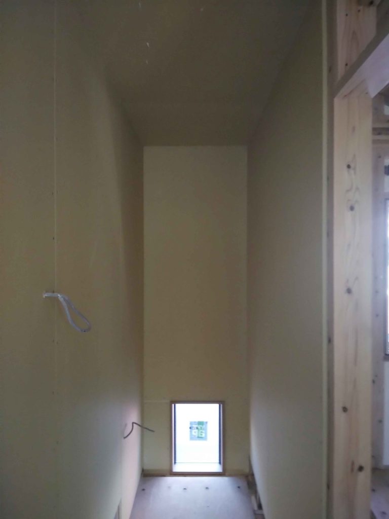 断熱材を吹き付け、電気配線などを行った後に、プラスターボードを打ち付ける作業を行います!