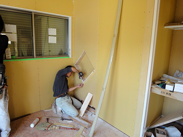 陵厳寺Y様邸の幸せづくり状況:ボード貼り♪