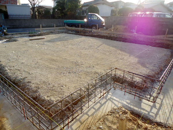 この捨てコンクリートの上に配筋を立てていくことにより、より基礎の強度を強くすることが出来ます。