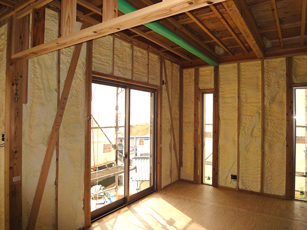 南区和田N様邸の幸せづくり状況:吹付け断熱♪