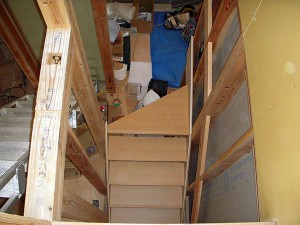 大工さんが階段を作っています!!