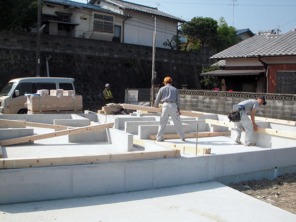 岡垣町K様邸の幸せづくり状況:土台敷き♪ 基礎の工事が終了しますと、木工事に移ります。土台敷きは木工事の初めの工程になります。 土台敷きとは基礎の上に土台という木材を敷く作業です。 タグ: 岡垣町K様邸の幸せづくり状況:土台敷き♪