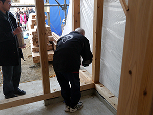 四隅の柱に酒や塩、米などをまき、天地四方の神を拝みます。