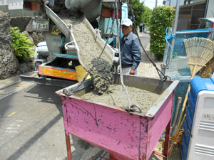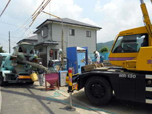 かくはん車で運んだコンクリートを流し込んでいきます!!