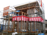上棟式とは、建物の守護神と匠の神を祀って、棟上げまで工事が終了したことに感謝し、無事、建物が完成することを祈願する儀式です。