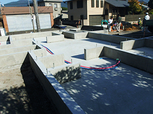 コンクリートも固まり基礎が完了したら、全体を見渡して、ひび割れやジャンカなどがないか確認していきます。