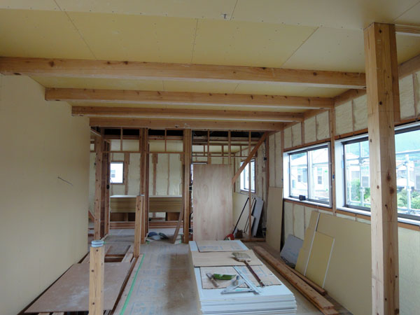 プラスターボード貼りの様子です。