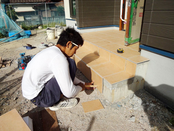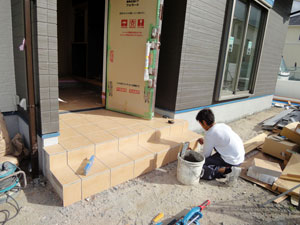 宇美町 I 様邸の幸せづくり状況:玄関タイル工事♪