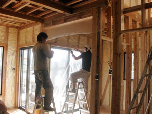 複雑な構造の住宅も現場で吹付けて発泡させるから隙間なく施工でき、自己接着能力によって強力に接着するので、長期間に亘って優れた気密・断熱性を維持します。