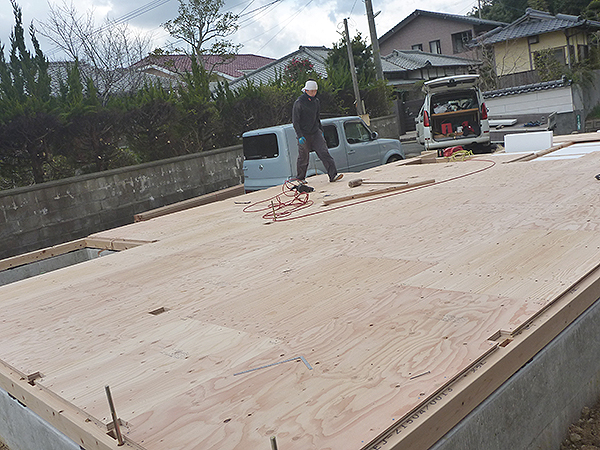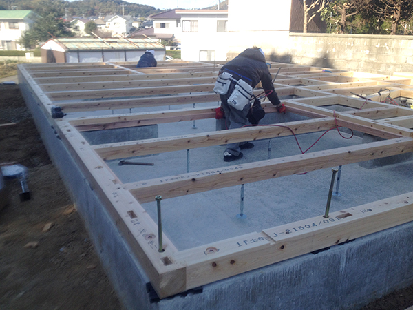 宗像市ひかりヶ丘Y様邸の幸せづくり状況:土台敷き♪ 宗像市ひかりヶ丘Y様邸の土台敷きの様子です♪ 基礎が立ち上がると、土台敷きを行います。 土台敷きとは基礎の上に土台と云う木材を敷いて行く作業です。 タグ: 宗像市ひかりヶ丘Y様邸の幸せづくり状況:土台敷き♪