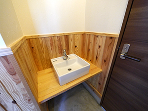 一階のカフェスペースのお手洗いはお客様がご利用する為、