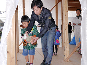 上棟式とは、建物の守護神と匠の神を祀って、棟上げまで工事が終了したことに感謝し、