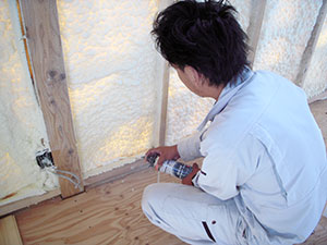 - 硬質ウレタンフォームによる隙間のない施工で高い気密性を実現。細かな気泡構造は吸音性にも優れています。