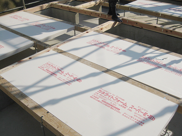 断熱材を敷きつめた後に、木材の板を隙間なく敷きつめていきます。