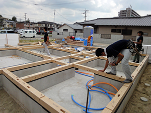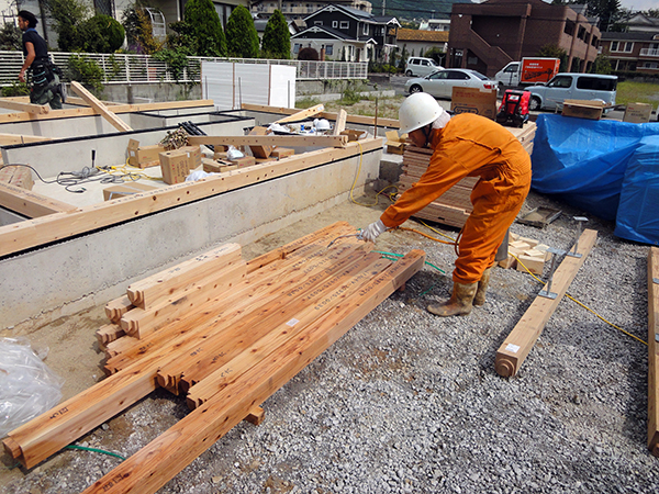 陵厳寺Y様邸の幸せづくり状況:土台敷き・防蟻♪