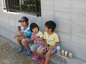 暑い中頑張ってくれて、ジュースで疲れをとっています。