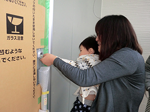 あっこさんに抱えてもらいながら、鍵を開けるお手伝い♪