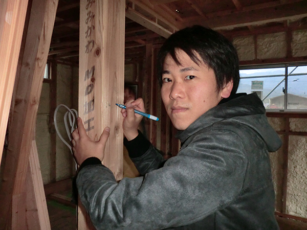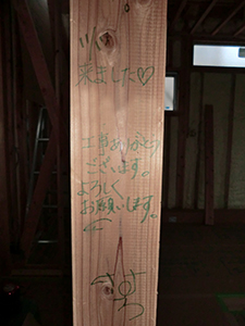 須惠町M様邸の幸せづくり状況:柱落書きメッセージ♪