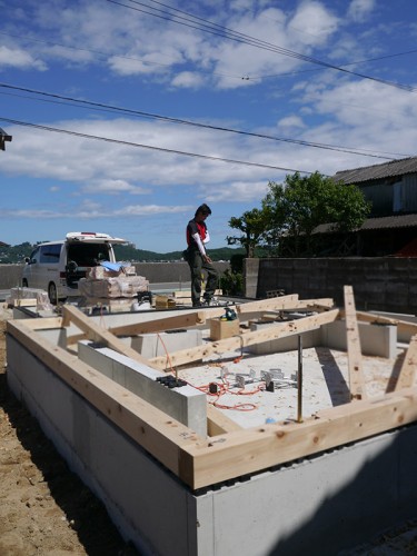 糸島市志摩O様邸の幸せづくり状況:土台敷き