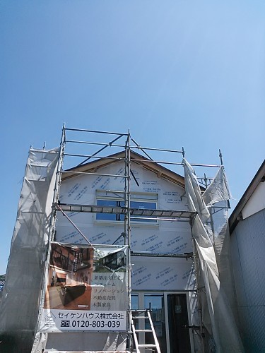 本日、糸島市志摩O様邸にて、外壁シート、サッシの取り付け工事が完了しました♪ 透湿防水シートとは、水は通さず、湿気を通す性質のあるシートの事です。 この上にサイディングを貼ります! サッシも爽やかな白になっ...