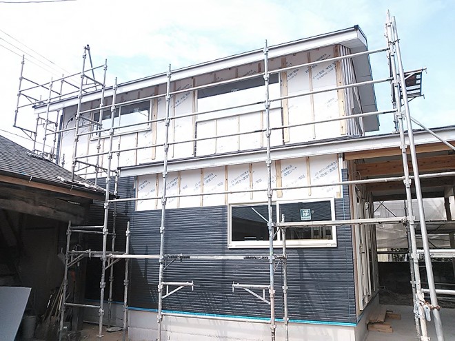 糸島市志摩O様邸の幸せづくり状況:外壁サイディング工事
