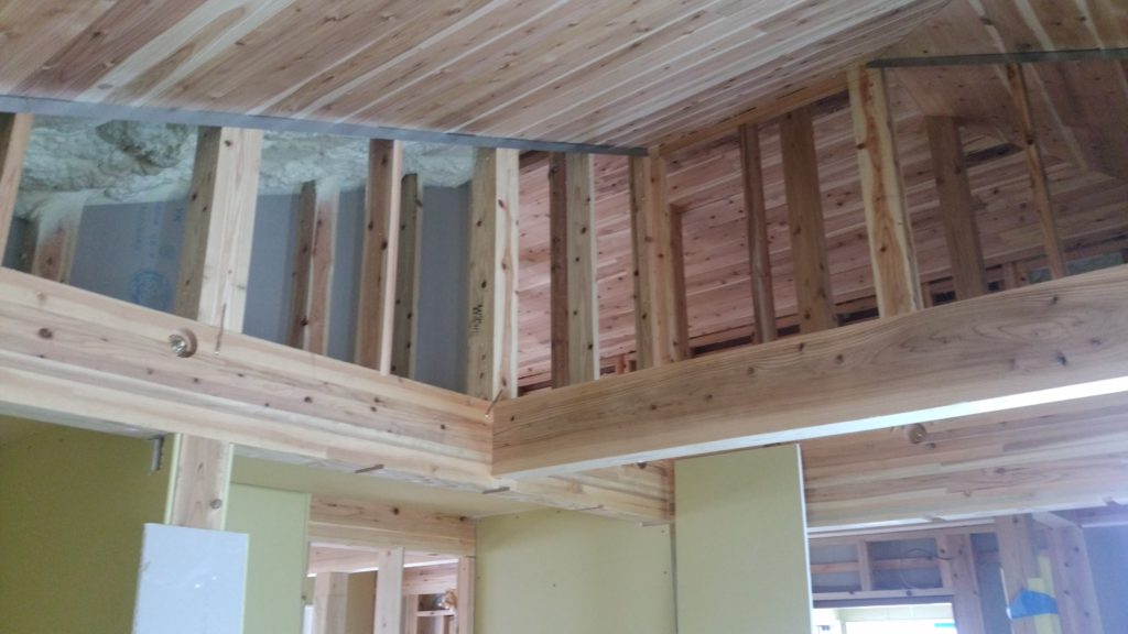 太宰府市K様邸の幸せづくり状況です! 木工事中です! 天井の杉板張りがとてもきれいですね~(^^♪ 断熱材の上にプラスターボードを張り付けています! 次の工程に進みます♪ &nb...