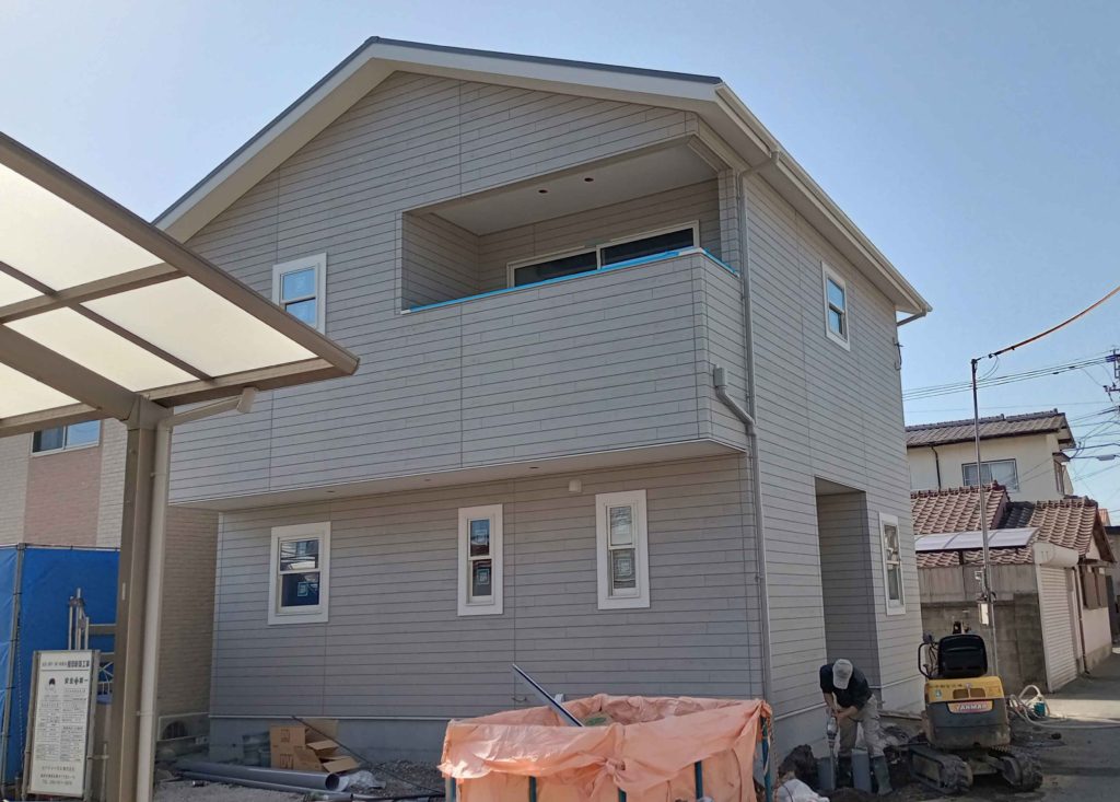 志免町A様邸の幸せづくり状況です! 足場が取れました♪ 只今、外構工事中です! 仕上がりが楽しみですね(*’▽’)