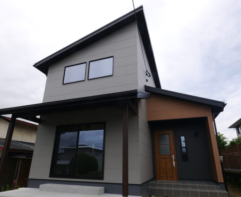 筑前町I様邸の幸せづくり状況です! 足場がとれました♪ 外壁の深い色合いが印象的ですね(^^♪ 内部の仕上がりも楽しみです♪