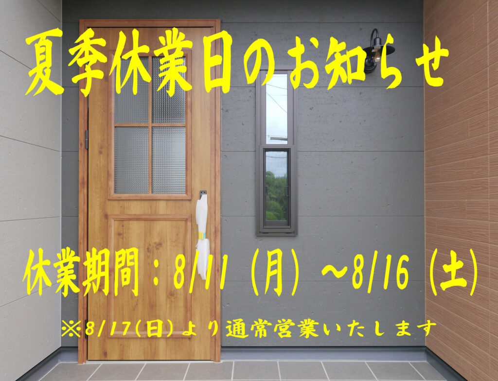 夏季休業日のお知らせ♪ 8/11(月)~8/16(土)