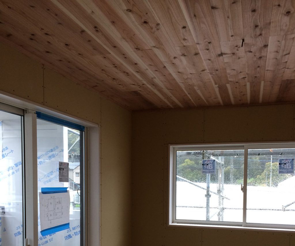 宇美6丁目K様邸の幸せづくり状況です♪ 造作工事の様子です! 天井の杉板張りが、木のぬくもりを感じられる仕上がりになっています! 棚や階段などが取り付けられています(^^♪ これからの進行が楽しみです(≧▽...