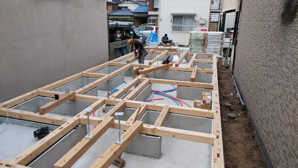 博多区E様邸の幸せづくり状況です♪ 土台敷の様子です! 次は、棟上げです!